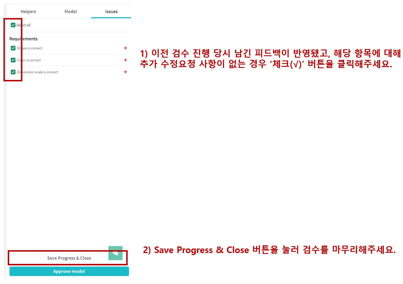 2) 하단에 있는 Save Progress & Close 버튼을 눌러 검수를 마무리해주세요.