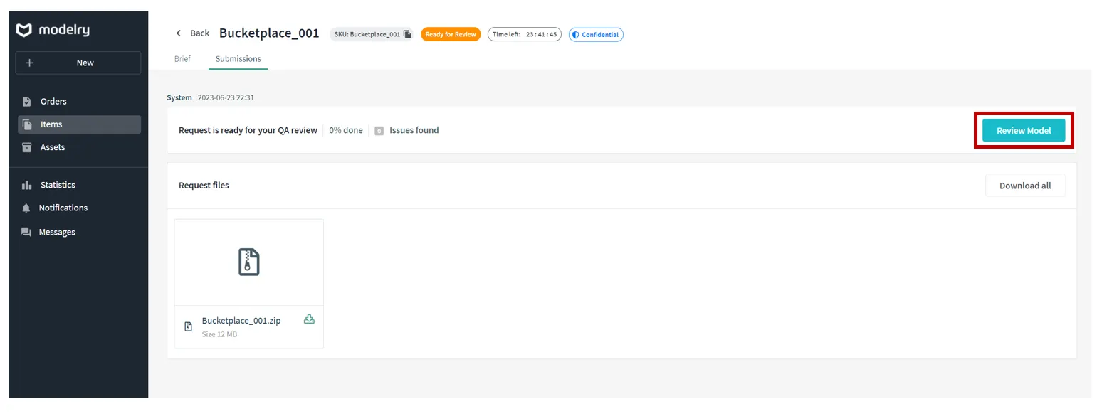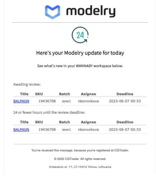 3D 모델 제작 완료시 발송되는 Here's your daily Modelry update! 제목의 메일에서 Title 아래 제품명을 클릭해주세요.