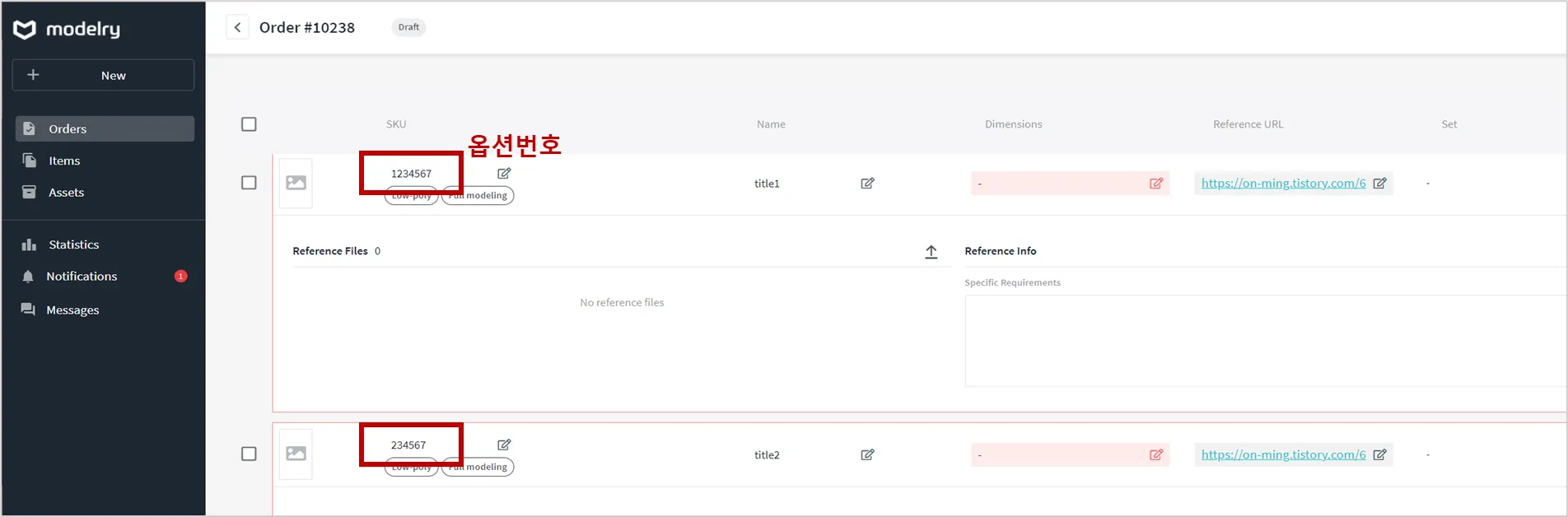 제출하실 때는 각 아이템의 옵션번호와 첨부하신 이미지 정보가 일치하는지 확인해주세요. 화이트 색상 옵션번호에 블랙 색상 이미지를 첨부하시는 경우, 모델이 뒤바뀌어 제작될 수 있습니다.
