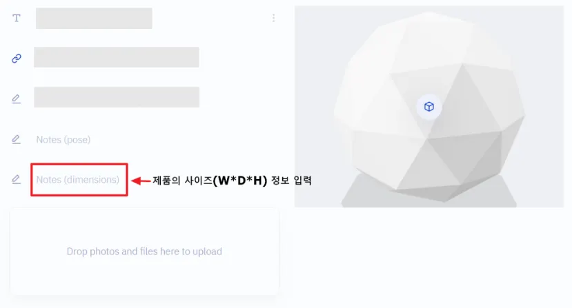 3D 모델은 다각도에서 촬영된 제품 사진 및 제출해주신 사이즈 정보를 기반으로 제작됩니다. 정확한 3D 모델 제작을 위해 아래 안내에 따라 정보를 제출해주세요.