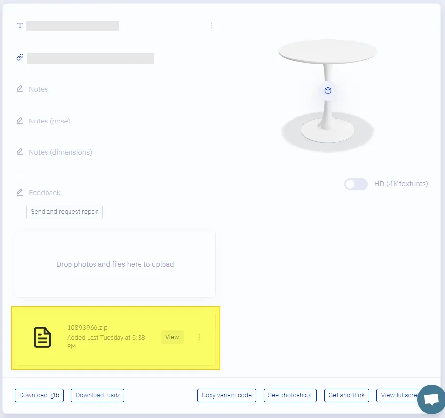 모든 3D 모델링 파일은 GLB, GLTF, USDZ 형식으로 전달됩니다.